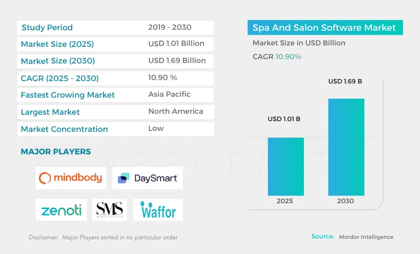 - The spa and salon software market size is further estimated to be USD 1.01 billion in 2025, this amount is expected to reach USD 1.69 billion by 2030, at a CAGR of 10.9% during the forecasted period.