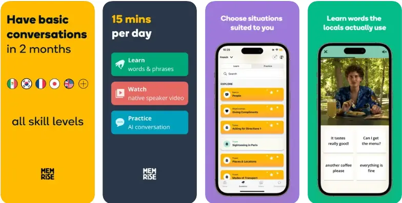 It uses spaced repetition and mnemonic techniques to help users remember vocabulary and phrases effectively. Memrise offers a variety of interactive exercises, including videos featuring native speakers, to enhance the learning experience.