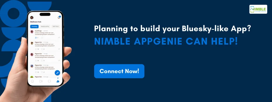 Knowing that it is a challenge to find a development team that works as per your requirements, you can rely on Nimble AppGenie to help you overcome all the app development challenges! With decades of experience and highly professional developers, we can help you get the best social media app development services, helping you create an app like Bluesky in no time!
