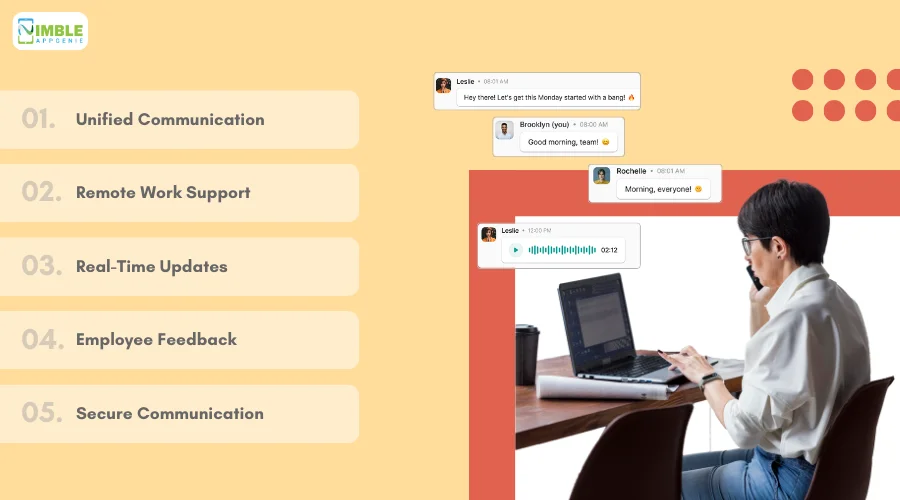 - Remote Work Support: With the rise of remote work, an office communication app is essential for keeping remote employees connected and engaged. It enables seamless communication and collaboration, regardless of location, and helps maintain a sense of team cohesion.